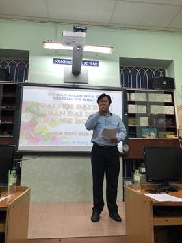 * Ông Lê Duy Tín – Phó BĐD CMHS báo cáo tổng kết công tác của Ban đại diện CMHS năm học 2018 – 2019 và phương hướng hoạt động năm học 2019 – 2020.